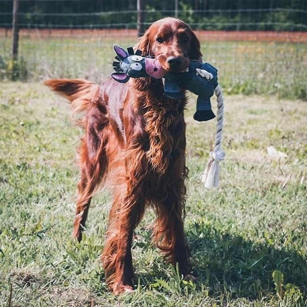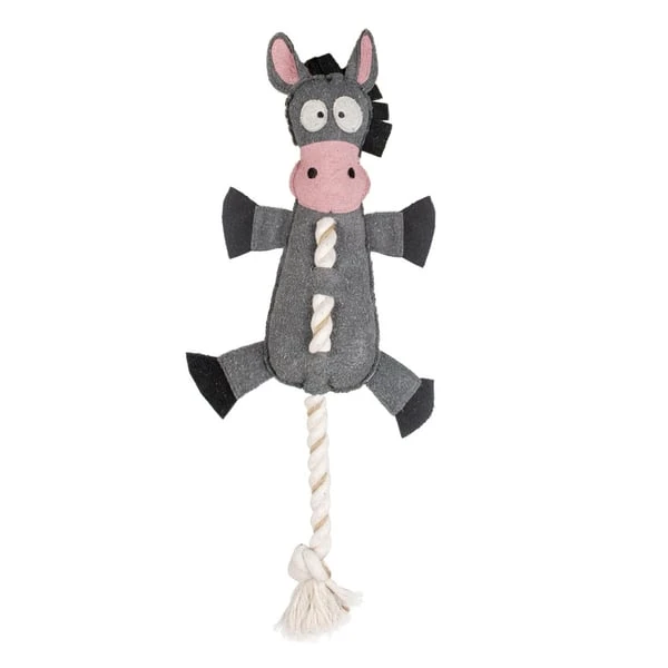 Das DUVO+ Farm Friends Donald Donkey Hundespielzeug ist mit einem eingebauten Quietscher ausgestattet, der für unbegrenzten Spielspaß sorgt. Dein Liebling wird es lieben, auf dem Spielzeug herumzukauen und mit der Baumwollschnur zu spielen. Das Kauen auf diesem Material trägt nicht nur zu einem gesunden Gebiss und Zahnfleisch bei, sondern bietet auch eine willkommene Abwechslung.