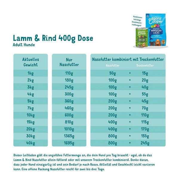 | Aktuelles Gewicht | Nur Nassfutter | Nassfutter kombiniert mit Trockenfutter | ||