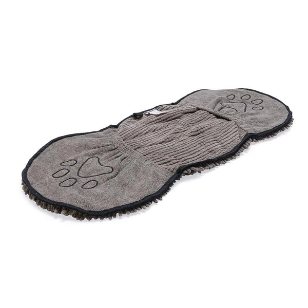 Das Dirty Dog Handtuch Shammy ist ein extrem saugfähiges Mikrofaser Handtuch. Damit lässt sich dein Hund besonders gut abtrocknen. Mithilfe der speziellen Oberfläche des Handtuchs nimmt dieses 20mal mehr Wasser und Schmutz auf. Somit kannst du deinen Vierbeiner 8mal so schnell abtrocknen wie mit einem normalen Baumwolltuch oder Föhn. Ein praktisches Detail sind die beiden elastischen Taschen für die Hände, mit denen du das Handtuch besser im Griff hast. Waschempfehlung: separat und mit kaltem Wasser waschen, dann einfach zum Trocknen aufhängen.