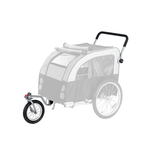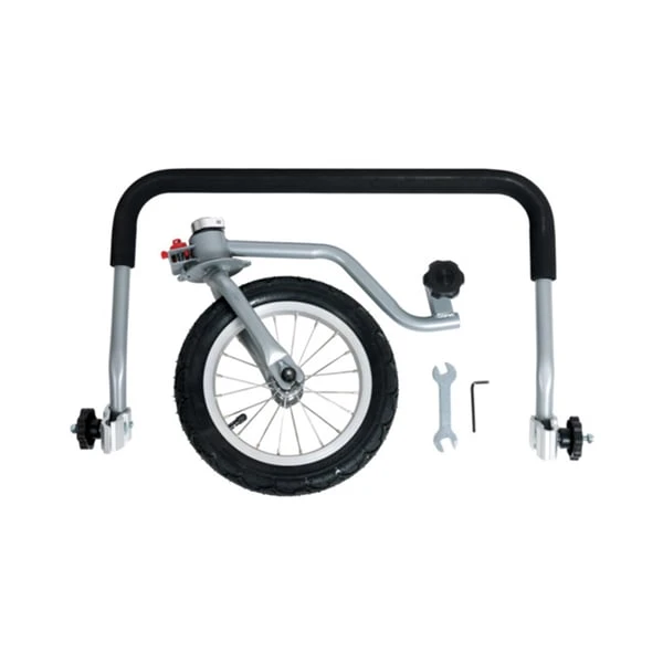 Mit diesem Jogger-Set kann der Fahrradanhänger im Handumdrehen in einen Buggy für Hunde oder Katzen verwandelt werden. Ideal zum Joggen, für Spaziergänge oder auf Reisen. Einfach den roten Hebel am Vorderrad betätigen und schon ist Ihr Buggy vollkommen mobil und wendig.