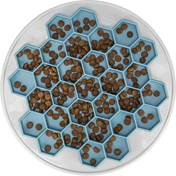 Schlingt dein Hund schnell und unkontrolliert sein Essen hinunter? Dann ist die Trixie Slow Feeding Platte Hive die ideale Lösung. Die einzigartige Form der Platte begünstigt eine längere Beschäftigung deines Hundes mit seinem Futter und verhindert somit das Schlingen. Das weiche Material der Platte schont zudem Maul und Zähne. Die Platte eignet sich für alle Futtersorten und ist rutschfest sowie spülmaschinengeeignet.